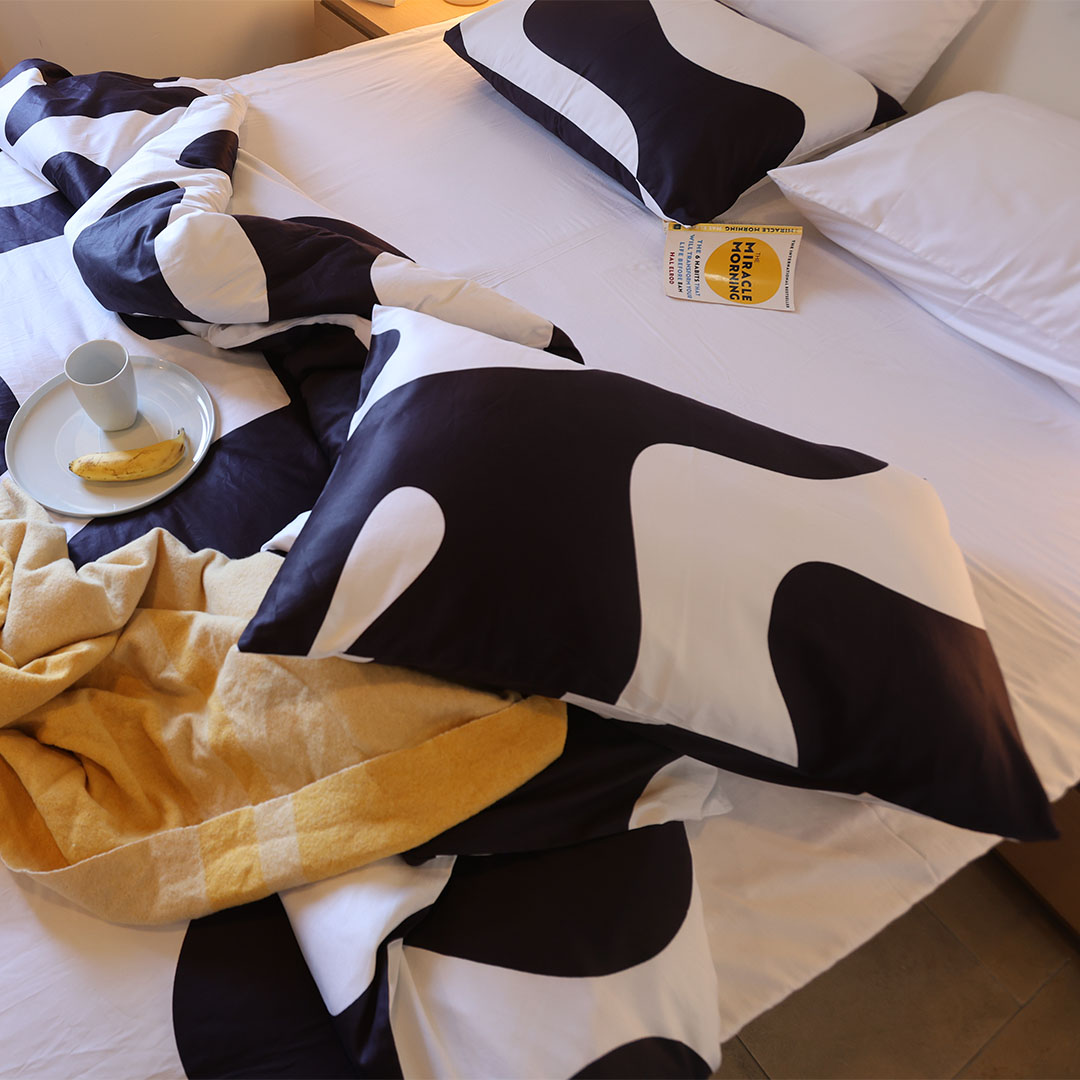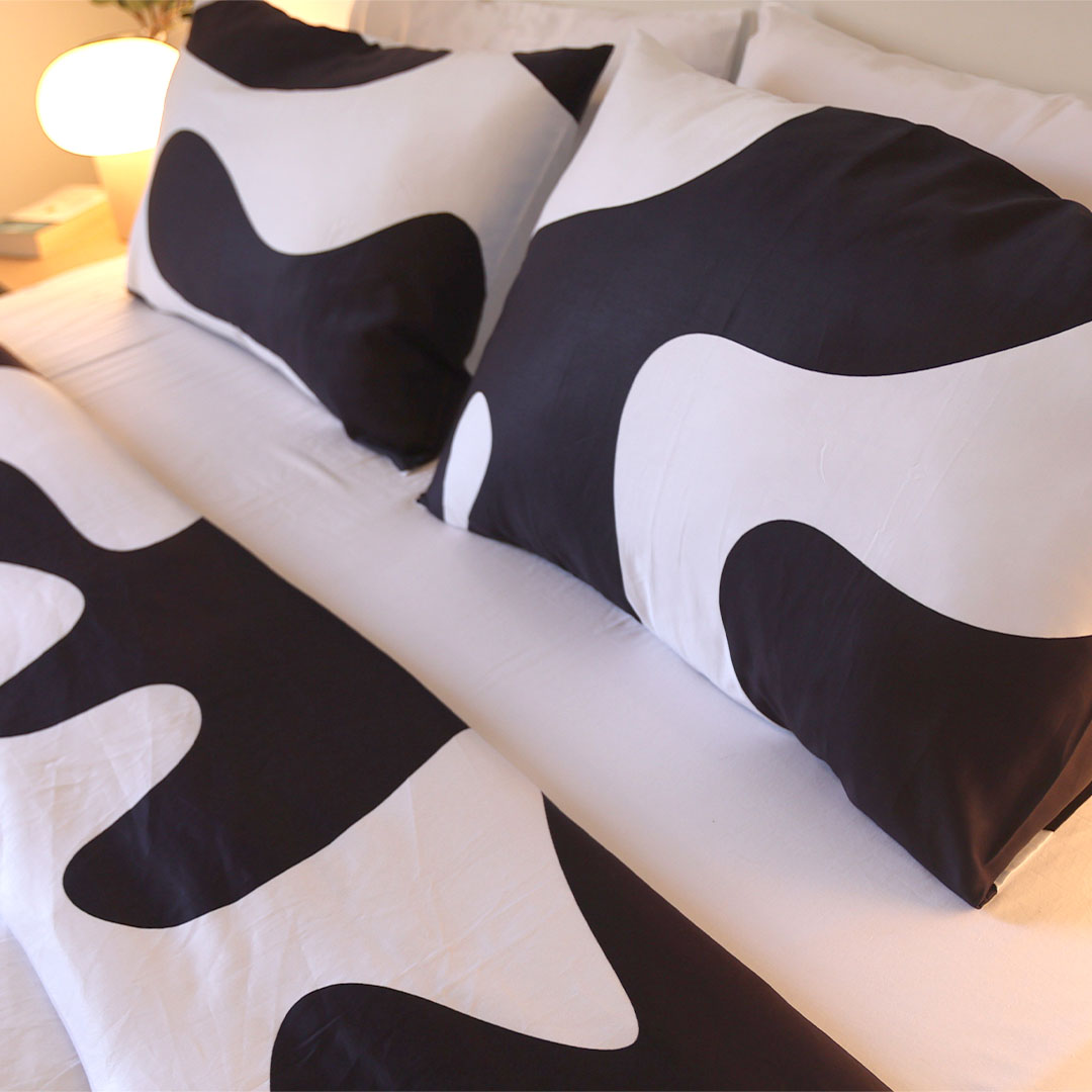 Think of it as your nightly meditation in print form: a reminder that balance isn’t about being still, it’s about moving gracefully between the light and the dark. Designed by Tanya Hayek on 300 TC Cotton Percale, to make any bedroom feel like a gallery of dreams. You’ll swear you’re floating inside a cloud-shaped brushstroke.