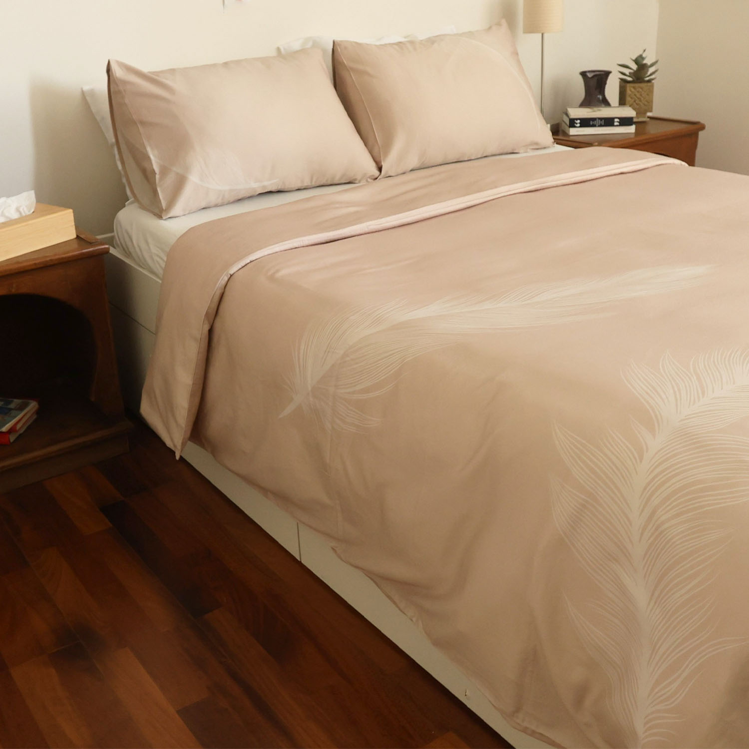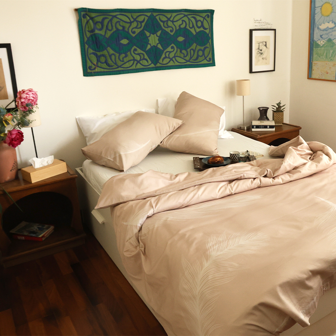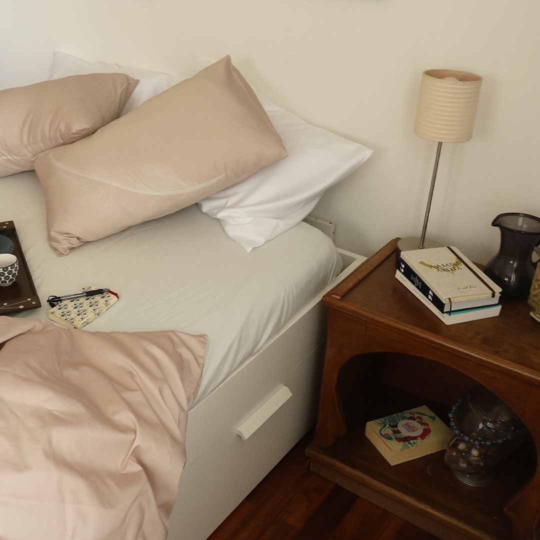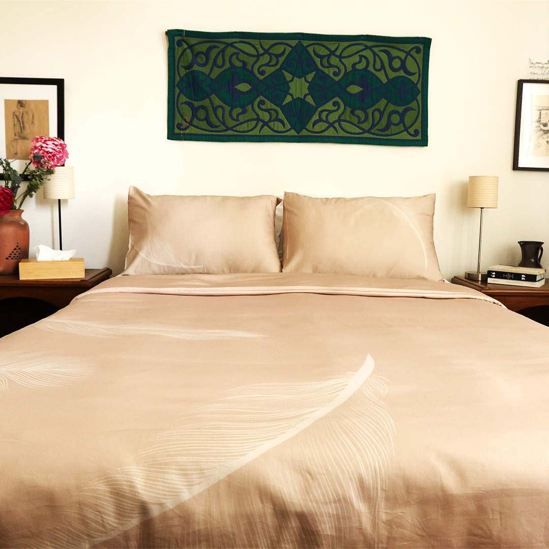 Exclusively created by Nadine Mobayed, this feather-filled fantasy is spun from 300 TC Cotton Percale, so light and smooth, it’s practically levitating. Go on — float off, you’ve earned it.
