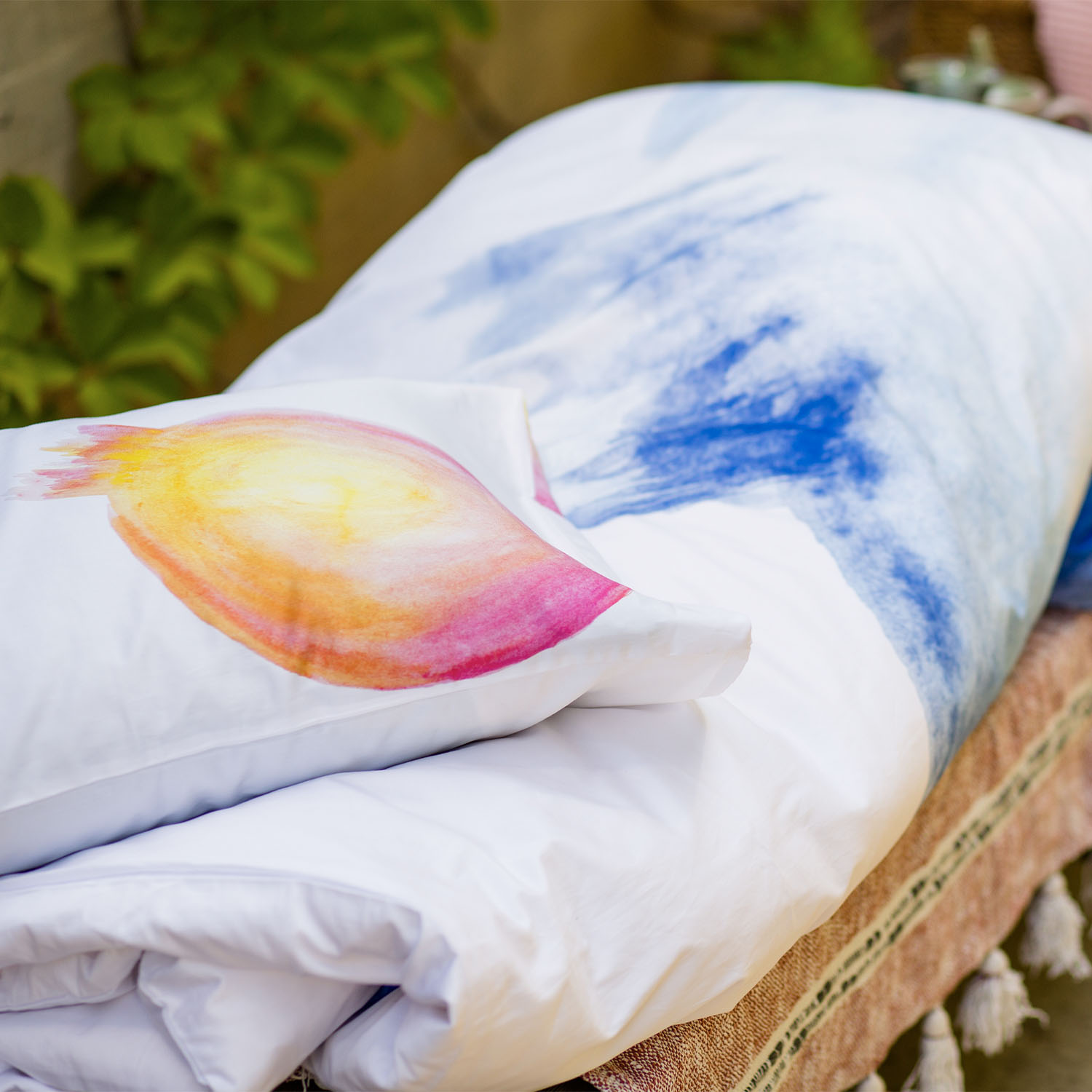 Now, it’s well documented that according to Greek tradition; (and yes, even if you’re not Greek), and you’re wishing for some good luck in the new year, you would set out and prepare for some pomegranate-smashing!  Kindly note that we do not endorse doing so on this dazzling bedlinen!